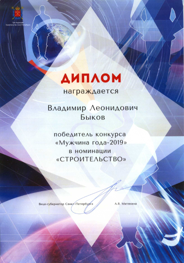 Директор Ассоциации «ПОС», Почетный строитель России Владимир Быков стал победителем конкурса «Мужчина года-2019» в номинации «Строительство».