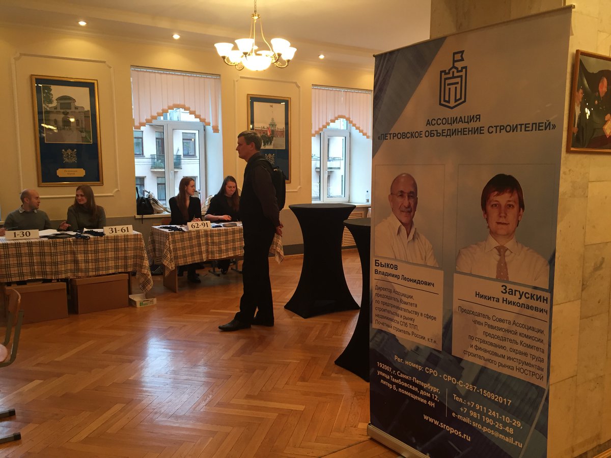 27 октября 2017 года в Санкт-Петербурге в актовом зале клуба Военного института (инженерно-технического) ВА МТО состоялось годовое общее собрание членов Ассоциации «Петровское объединение строителей», в котором приняли участие представители 103-х строительных организаций-членов Ассоциации с правом решающего голоса.