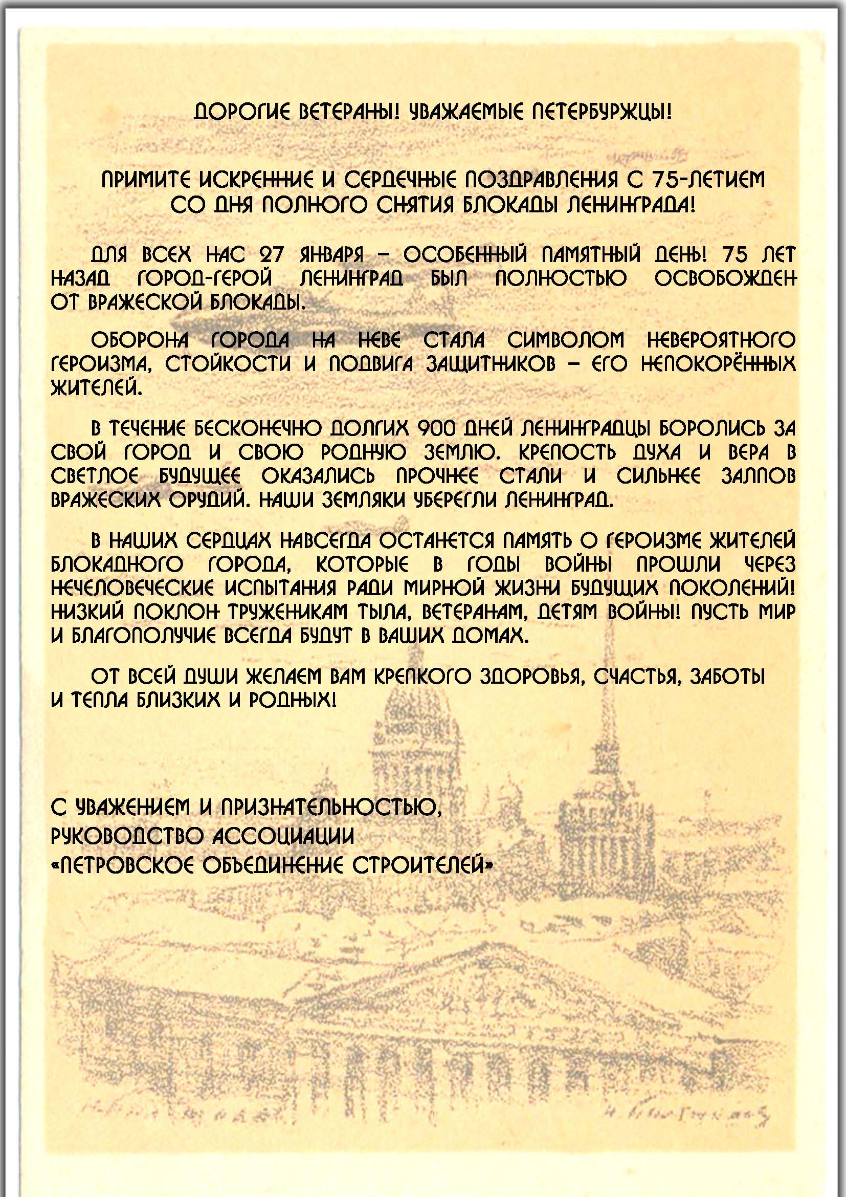 Поздравление с 75-летием со Дня полного снятия блокады Ленинграда!
